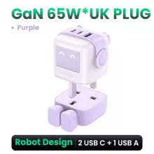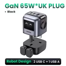 What makes this 65W GaN charger truly special is its combination of efficiency, versatility, and unique design. Unlike traditional chargers, GaN technology allows for a more compact and energy-efficient build without sacrificing power. The smart charging system adjusts to your device's specific needs, providing the fastest charge possible while protecting against overheating or short circuits. Plus, its sleek, robot-inspired design adds a fun, modern touch to your tech accessories. Whether you need to charge your phone, laptop, or tablet, this charger is ready for the job.