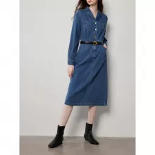 Use our battle tested marketing materials for Mid-Length Denim A-Line Dress with Lapel Collar and Long Sleeves