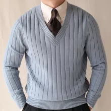 Use our battle tested marketing materials for Men’s Winter Striped V-Neck Knit Sweater – Slim Fit Warm Pullover