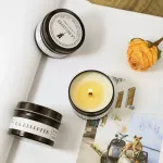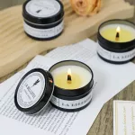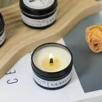- Stylish black tin can with lid keeps the candle fresh and dust-free
