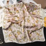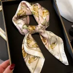 Elevate your accessory game with our stunning floral print silk scarf. Measuring 70x70 cm (27.56 x 27.56 inches), this scarf is designed to add a touch of elegance to any outfit. Crafted from high-quality polyester with a luxurious silk feel, it drapes beautifully around your neck, wrist, or handbag, making it a versatile addition to your wardrobe. With four delightful colors to choose from, you can effortlessly express your unique style.