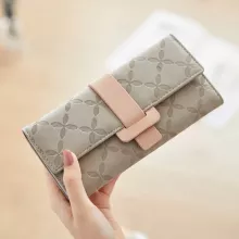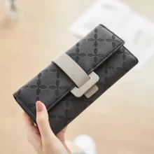 This elegant and versatile long wallet for women combines style and practicality, making it the perfect accessory for everyday use. Crafted from high-quality PU leather, this wallet offers a sleek, modern design that is both durable and lightweight. With its foldable design, it provides ample space for organizing your cash, cards, and coins without feeling bulky. The beautiful floral decoration and contrasting color accents give it a touch of sophistication, making it a must-have addition to your accessory collection.