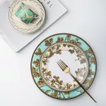 This European-style dinnerware set is designed for those who appreciate fine craftsmanship and a modern aesthetic. The golden-edged plates and saucers exude luxury, making every meal feel like an elegant affair. Whether you're hosting a formal dinner party or enjoying a quiet meal at home, this set brings sophistication to the table. Its variety of styles allows for flexible use, with plates perfectly sized for salads, main courses, or desserts, and a coffee cup and saucer set that’s ideal for after-dinner relaxation. It's a versatile set that combines beauty with function for any meal.