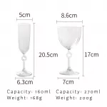 Crafted from high-quality crystal glass, these wine glasses are designed to enhance any drinking occasion. Their sleek, transparent design reflects light beautifully, while the smooth mouth ensures a seamless drinking experience. The vertical engraving on the glass adds a refined touch, creating a mesmerizing visual as light passes through. Available in two sizes, 160ml and 270ml, these goblets are the perfect choice for serving wine, champagne, or any refreshing beverage with a sophisticated flair.