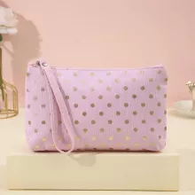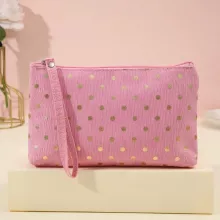 Use our battle tested marketing materials for Pretty Pink Canvas Makeup Brush Organizer with Gold Foil Dots - Travel Cosmetic & Jewelry Bag