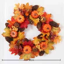 This beautiful wreath is crafted from a combination of high-quality rattan, plastic, and natural vine, making it both durable and low-maintenance. The meticulous design ensures that each element—from the bright pumpkins to the textured pine cones—looks realistic and vibrant. The natural vine base adds a rustic feel, while the rich colors of the maple leaves and berries create an eye-catching contrast. Hang it on your front door to greet visitors or use it indoors to bring the essence of autumn into your living space.