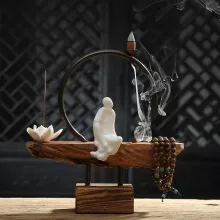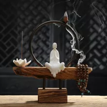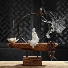 Use our battle tested marketing materials for Elegant White Ceramic Monk Lotus Backflow Incense Burner with Wooden Base
