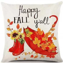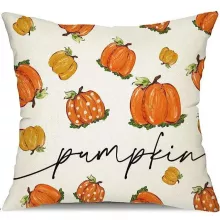 Use our battle tested marketing materials for 18x18 Inch Linen Thanksgiving Pillow Cover - Pumpkin & Maple Leaf Design