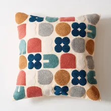 Its versatile size options mean you can use it as a decorative accent on chairs, sofas, or beds. The colorful, geometric-inspired embroidery brings energy and brightness to any setting, making it an excellent decor piece for various occasions, including weddings, hotels, or even coffee bars.