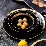 Made from high-quality ceramic, this platter combines durability with exquisite design. Its solid pattern ensures a timeless appeal, while the gold edge elevates the overall aesthetic, making it ideal for both casual family meals and formal dining occasions. The round shape not only looks elegant but also provides ample space for serving a variety of dishes, making it a versatile addition to your tableware collection.
