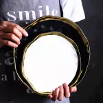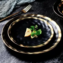Transform your mealtime into a gourmet experience with our elegant ceramic beef platter. This beautifully designed plate features a simple yet creative round shape, enhanced by a stunning gold edge that adds a touch of sophistication. Whether you're serving breakfast, lunch, or dinner, this platter is perfect for showcasing your culinary creations, from savory beef dishes to colorful vegetable presentations.