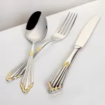 This 4-piece cutlery set stands out thanks to its luxurious gold inlay and sleek, modern design. Unlike ordinary silverware, this set combines functionality with a touch of elegance, turning everyday meals into a fine dining experience. The eco-friendly stainless steel material is rust-resistant and durable, while the partial gold inlay adds a rich, decorative accent that makes every meal feel special. This set is perfect for those who value both style and quality in their tableware.