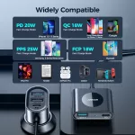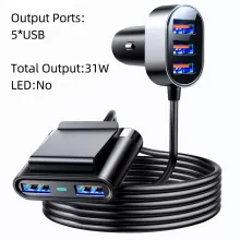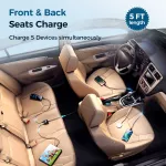 - 5 USB Ports: Charge up to 5 devices at once, with 3 USB ports for the front seat and 2 for the back, making it ideal for family road trips or group travels.