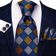 Use our battle tested marketing materials for Blue & Gold Plaid Silk Necktie Set for Men