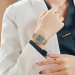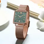 Discover a timepiece that perfectly blends sophistication and modern style with the Rose Gold Square Watch featuring a stunning green dial. This striking watch is designed for the woman who values elegance with a twist of uniqueness. Its square case shape, paired with the rich green dial and Roman numeral accents, sets it apart from traditional wristwatches. The rose gold stainless steel strap adds a touch of luxury, making it a fashionable accessory for any occasion.