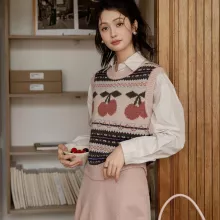 Use our battle tested marketing materials for Vintage Knitted Cherry Jacquard Sleeveless Sweater Vest