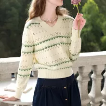 Use our battle tested marketing materials for Apricot V-Neck Hollow Knit Sweater for Women