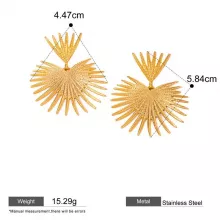 Crafted from high-quality stainless steel and plated with 18K gold, these earrings are built to last. The gold plating is applied through advanced PVD technology, ensuring a long-lasting color that resists fading and scratches. The stainless steel base makes them water-resistant and rust-proof, so you can wear them confidently in any setting. At only 0.54 oz (15.29 g), these earrings are lightweight and comfortable for all-day wear, making them as practical as they are beautiful.