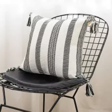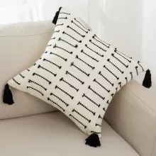 Use our battle tested marketing materials for Elegant Black and White Cushion Cover 18x18 with Woven Tassels