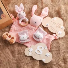 Use our battle tested marketing materials for Newborn Crochet Bunny Rattle & Wooden Teether Set