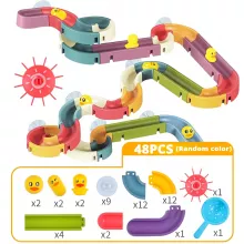 This DIY bath toy set includes multiple colorful pipeline tracks that attach easily to any smooth bathtub or tile surface, allowing kids to design custom slides for their cute yellow duck friends. The set encourages imaginative play, as little ones can create different paths and watch as water flows through the track, carrying the ducks down in exciting ways. The easy-to-assemble, sturdy ABS plastic ensures safe, durable fun for both boys and girls, making it an excellent choice for families looking to add some extra excitement to bath time.