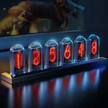 Bring a touch of retro charm and modern technology to your game room or desktop with the RGB LED Nixie Tube Clock. This stunning clock features a vibrant IPS color screen and simulated neon tubes that create a mesmerizing glow, instantly elevating the atmosphere of any room. With its customizable settings, you can easily personalize the display to match your mood or decor style. Whether you're a gamer looking for the perfect addition to your setup or simply want a unique statement piece for your home, this clock is sure to impress.