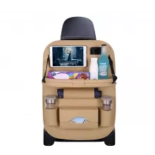 Use our battle tested marketing materials for Premium Car Seat Back Organizer with Foldable Table Tray - PU Leather Storage and Kick Mat