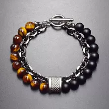 Use our battle tested marketing materials for Tiger Eye Stone Beaded Bracelet with Stainless Steel Link Chain