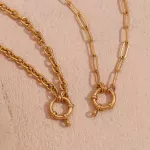Make a statement with our 18K Gold Plated Blade Paper Clip Chain Necklace, featuring a chic O-shaped chain and a striking spring buckle pendant. Crafted from premium 316L stainless steel, this trendy piece is designed to stand out. Whether you’re dressing up for a special occasion or adding a polished touch to your daily look, this necklace effortlessly elevates any outfit. With a modern design and durable materials, it’s the perfect addition to any jewelry collection.