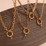 This necklace is designed with durability in mind, thanks to its tarnish-free finish and hypoallergenic materials. Its unique chain style, combining blade and paper clip links, adds a distinctive edge while the O-shaped chain and spring buckle pendant complete the look with a modern twist. This blend of elegance and innovation makes it perfect for any style-conscious individual.