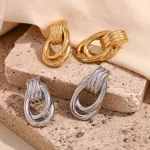 Make a striking style statement with these Geometric Multi-Layer Striped Earrings, crafted from premium 316L stainless steel and elegantly plated with 18K gold. These earrings are designed to catch the light from every angle, highlighting a unique, winding striped pattern that adds a modern twist to any outfit. Perfect for both day and evening wear, their geometric layers offer a bold, yet sophisticated look that will effortlessly complement your wardrobe. Ideal for fashion-forward women, these earrings blend high-quality materials with a trendy, eye-catching design to create a piece you’ll want to wear again and again.