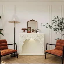 This French cream fireplace cabinet is the perfect addition for anyone seeking to add a touch of classic, sophisticated charm to their home. Don’t miss out on this unique opportunity to elevate your decor. Order today and experience the perfect blend of style, functionality, and elegance with this standout piece!
