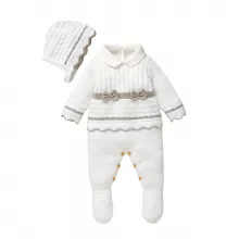 - Two-Piece Set: Includes a cozy knit romper with foot wrapping and a matching hat to complete the look.