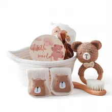 Use our battle tested marketing materials for Baby Cartoon Bear Rattle & Milestone Set - Newborn Blanket, Towel, and Bracelet Gift