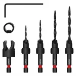 This countersink drill bit set is perfect for any woodworking project requiring precision and a professional finish. Whether you're crafting custom cabinetry, assembling furniture, or adding decorative wooden elements, this set ensures clean, flush screw installations and flawless surface finishes. Use it to drill, countersink, and counterbore in one seamless step, saving time and enhancing your work efficiency.