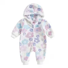 Use our battle tested marketing materials for Baby Girl Winter Hooded Romper - Floral Print Fleece Jumpsuit for Warmth