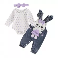 Use our battle tested marketing materials for Baby Girl Long Sleeve Dots Romper with Cat Denim Overall & Headband Set