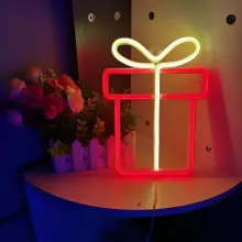 Get yours today and add a joyful glow to your holiday celebrations! This LED neon sign is a unique and memorable decoration that will bring festive cheer year after year. Perfect for kids' rooms, living spaces, parties, and all special occasions – let the Christmas Gift Box Neon Sign light up your celebrations!