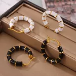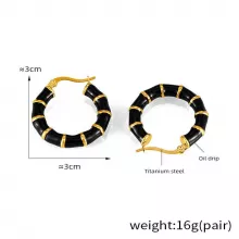 Embrace vintage charm and modern sophistication with these Black and White Enamel Bamboo Hoop Earrings. Designed for women who appreciate bold yet elegant accessories, these earrings feature a bamboo-inspired shape with a striking black-and-white enamel finish. The gold-plated stainless steel construction adds a touch of luxury while ensuring durability and resistance to water. Whether you’re dressing up for an evening out or adding flair to your casual ensemble, these earrings are the perfect statement piece.