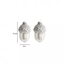Each set includes two glass acorn ornaments, each measuring 5 cm by 8.5 cm (approximately 2 inches by 3.3 inches). The acorns are beautifully finished in silver and are topped with shimmering glitter, giving them a frosted, sparkling appearance. These ornaments are made from high-quality glass, ensuring durability while maintaining their delicate and elegant look. The glitter detailing adds a touch of glamour, making them an ideal choice for hanging on your Christmas tree, displaying on your mantel, or using in tabletop decorations.