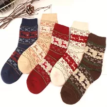 Add a touch of holiday charm to your wardrobe with the 5 Pairs Elk Print Thickened Socks. Perfect for keeping your feet warm and stylish, these mid-tube socks are designed with a festive elk pattern, making them the ideal addition to your winter and holiday outfits. Whether lounging at home or heading out into the frosty weather, these socks ensure comfort and cheer.
