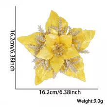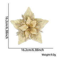 Add a touch of festive glamour to your holiday decorations with this stunning gold and silver artificial floral ornament. Designed to mimic the beauty of real flowers, these 6.3-inch (16 cm) blooms feature intricate detailing and a shimmering finish that instantly elevates your Christmas décor. Whether used on wreaths, garlands, or table centerpieces, this ornament brings a sophisticated and festive charm to any setting.