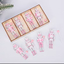 Infuse your holiday décor with the classic elegance of these 8pcs wooden nutcracker soldier ornaments. Perfect for hanging on your Christmas tree or displaying around your home, these finely crafted pendants bring a touch of tradition and whimsy to your festive celebrations. With their intricate detailing and vibrant colors, these ornaments are sure to captivate everyone who sees them.