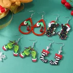 Get ready to dazzle this festive season with these trendy acrylic Christmas earrings. Designed for women who love to celebrate the holidays in style, these earrings feature playful and festive pendants such as green hands, black kittens, boots, and glittering sequins. The combination of bold colors and charming designs makes them the perfect accessory for Christmas parties, New Year celebrations, or any holiday event.