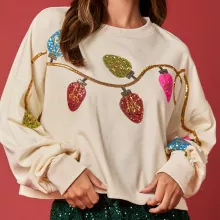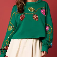 Use our battle tested marketing materials for Women’s Y2K Cropped Sequin Christmas Light Pullover Sweatshirt