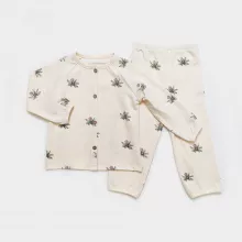 This toddler pajama set is the ultimate blend of style, comfort, and practicality. The soft cotton fabric ensures your little one feels comfortable whether they’re lounging at home or getting ready for bedtime. The stretchy material allows for plenty of movement, making it perfect for playtime too. Plus, the charming fruit and vegetable pattern adds an adorable touch, so your toddler can look as cute as they feel.