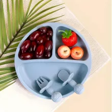 Use our battle tested marketing materials for 3-Piece Silicone Baby Feeding Set with Suction Bowl, Divided Plate, Spoon, Fork, and Bib