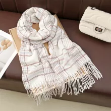 Elevate your winter wardrobe with our sophisticated women's plaid scarf. This luxurious long scarf, measuring 68.9 inches by 26.4 inches, offers a perfect balance of warmth, style, and versatility. The soft, thick material is ideal for keeping you cozy during chilly days while the light-colored grid pattern adds a touch of elegance to any outfit. Whether you're heading to work, exploring the city, or enjoying a casual day out, this scarf is a must-have accessory.
