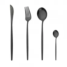 The set includes all the essentials: forks, knives, teaspoons, and dinner spoons, crafted from durable stainless steel for long-lasting performance. The solid color and minimalist design make it easy to pair with any dinnerware style, whether modern or classic. This flatware set is perfect for everyday use or as a special addition to your table for guests.