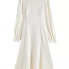 Use our battle tested marketing materials for Elegant Beige Winter Lace Dress with Long Sleeves and Fit-and-Flare Silhouette